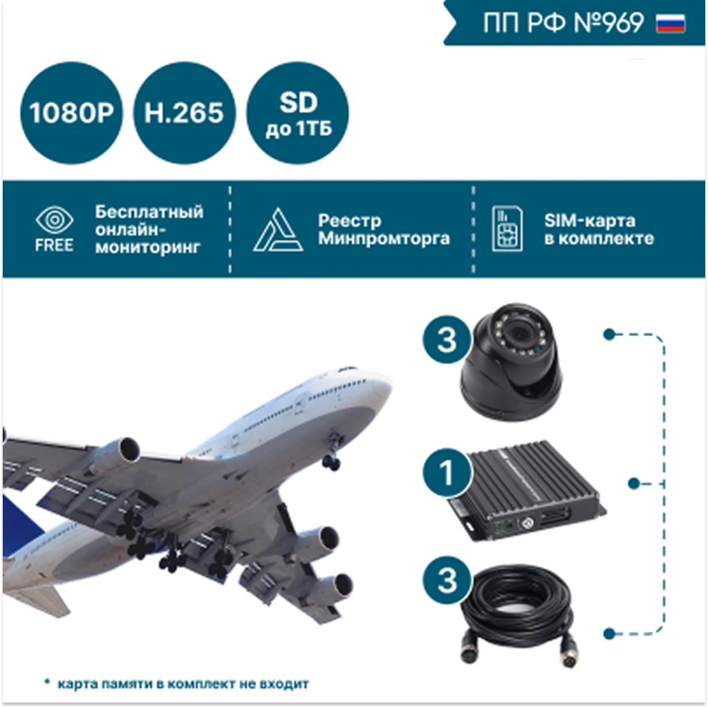 Комплект NSCAR BUS301: 3 камеры FullHD с 2 SD-картами для общественного транспорта. Контроль салона и дороги. Надежная запись 24/7